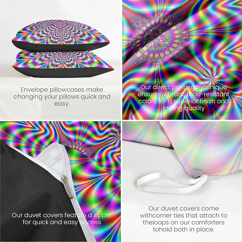 This Duvet Cover Set with Optical Illusion Graphic Prints, 100% Cotton Bedding Set, Ultra-Soft and Breathable Material, Includes Duvet Cover and Pillowcases, Modern and trendy Design, Durable combines elegant design with practical functionality. Every detail has been carefully considered to ensure you get the best possible experience. The finest construction means this product will serve you well for years to come.