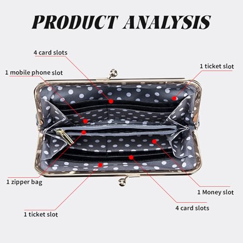 • iconic Vintage Charm: Embrace timeless elegance with this leather vintage wallet featuring a sophisticated kiss lock closure that adds a retro yet sleek touch, perfect for women who appreciate classic fashion.