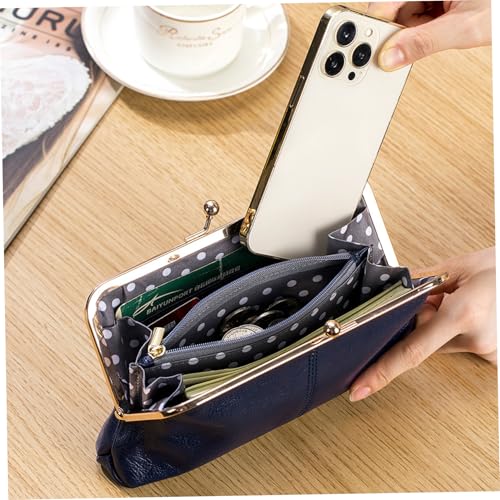 1PC Kiss Lock Wallet for Women, Leather Vintage Wallet with Zipper Coin Pocket, Multi-card Slots Card Holder, Dark Blue. 1