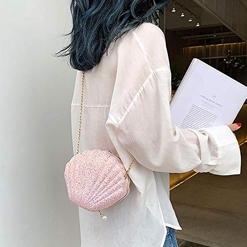 Goclothod Seashell Shape Purse Sequins Leather Crossbody Shoulder Bag Mini Chain Purse 1