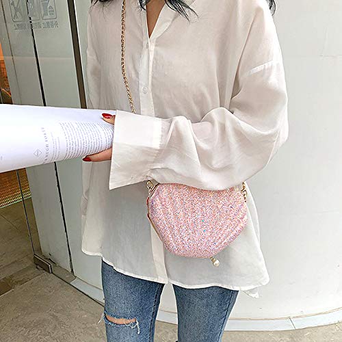 Goclothod Seashell Shape Purse Sequins Leather Crossbody Shoulder Bag Mini Chain Purse 5