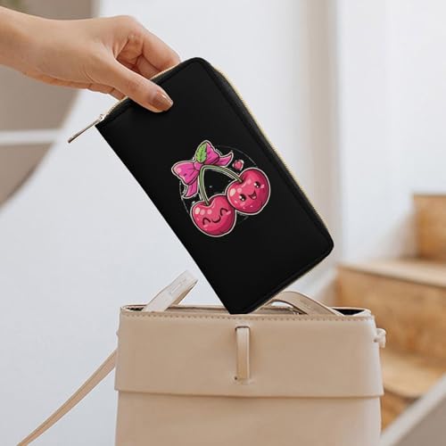 trending ! Bow Cherry Print Wristlet Wallets for Men Women Leather Purse Clutch Cute Card Holder