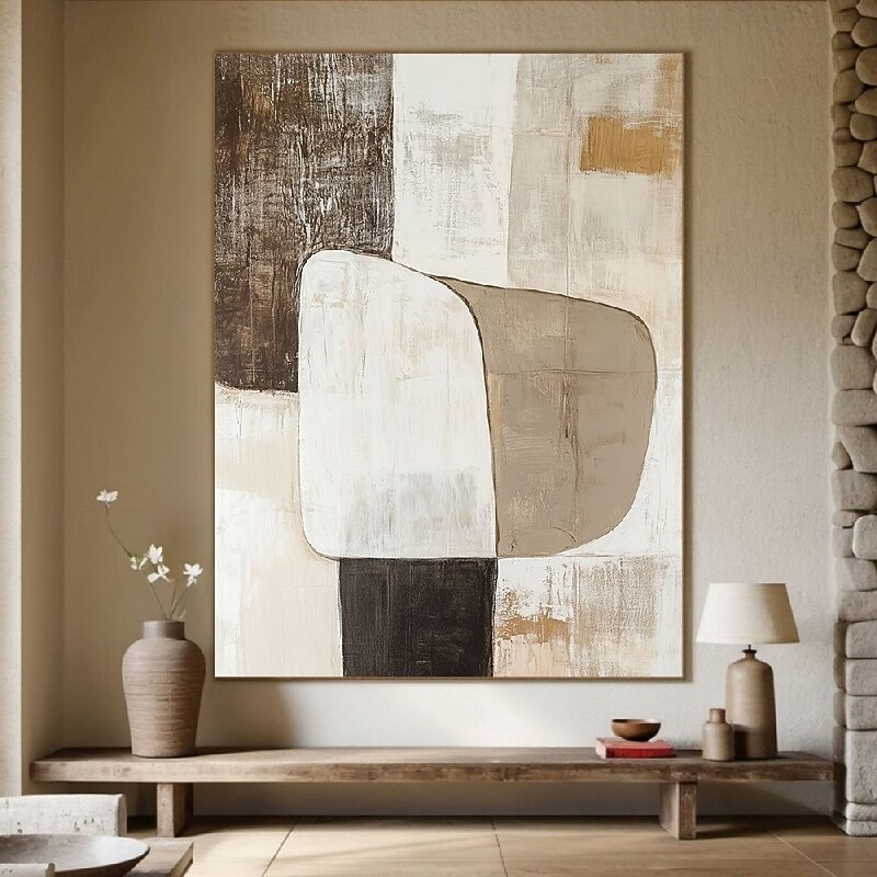 $92.99 - Handmade 3D Oil Painting Abstract Geometric Chair Form Minimalist Neutral Tone Painting Earthy Browns Cream Gold Block Composition Serene Artistic Decor 2025. Shop for cheap Wabi Sabi online? Buy at lightinthebox.com on sale today!