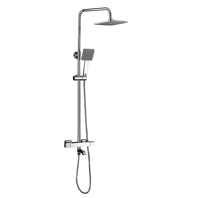 trending ! Shower Faucet,Rainfall Shower Head System / Thermostatic Mixer valve Set - Handshower Included pullout Rainfall Shower Contemporary Electroplated Mount Outside Ceramic Valve Bath Shower Mixer Taps