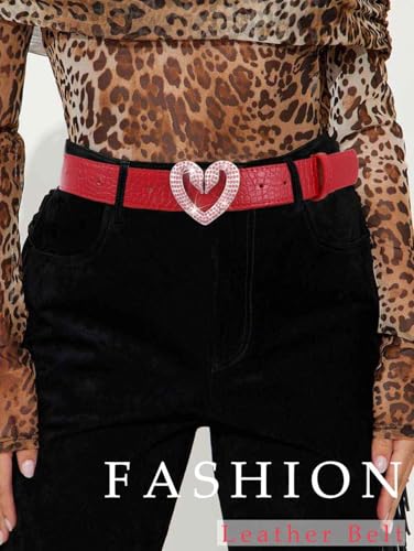 Western Women Belt Sparkle Rhinestone Snake Buckle Leather Belt Fashion Red Wasit Belt for Jeans Dresses Pants
