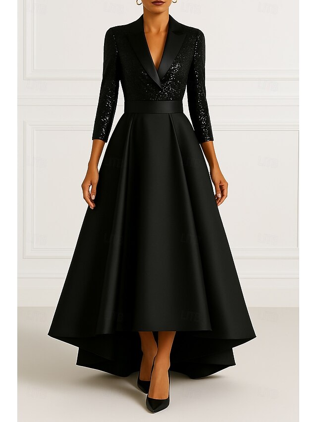$154.99 - Tuxedo Dress High-low Dress Formal Wedding Wedding Guest Sequin Elegant 3/4 Sleeve Pleated Floor Length Notched Lapels 2025. Shop for cheap Tuxedo Dresses online? Buy at lightinthebox.com on sale today!