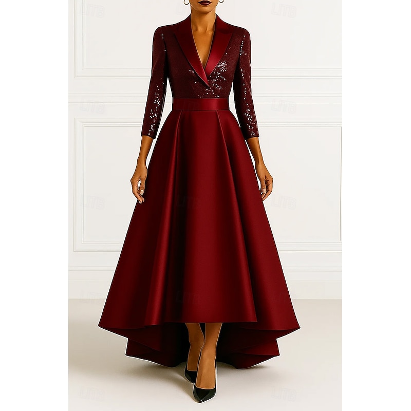 This Tuxedo Dress High-low Dress Formal Wedding Wedding Guest Sequin Elegant 3/4 Sleeve Pleated Floor Length Notched Lapels combines elegant design with practical functionality. Every detail has been carefully considered to ensure you get the ultimate possible experience. The premium construction means this product will serve you well for years to come.
