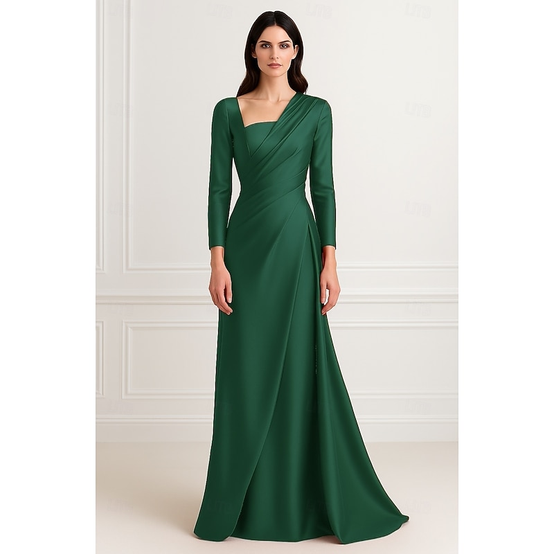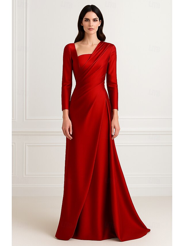 $139.99 - Red Black A-Line Evening Gown Elegant Dress Formal Wedding Floor Length Long Sleeve V Neck Stretch Satin with Pleats Ruched 2025. Shop for cheap Mermaid Evening Dresses online? Buy at lightinthebox.com on sale today!