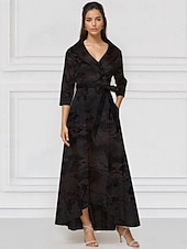 This Jacquard Brocade A-Line Mother of the Bride Evening Gown Elegant Dress Formal Wedding Guest Floor Length Long Sleeve V Neck Pocket Nylon with Bow(s) Strappy combines elegant design with practical functionality. Every detail has been carefully considered to ensure you get the best possible experience. The magnificent construction means this product will serve you well for years to come.