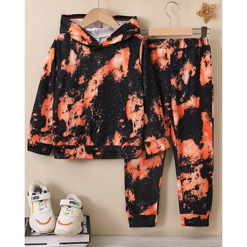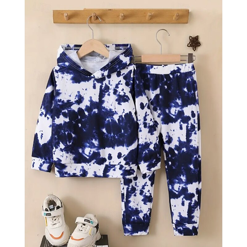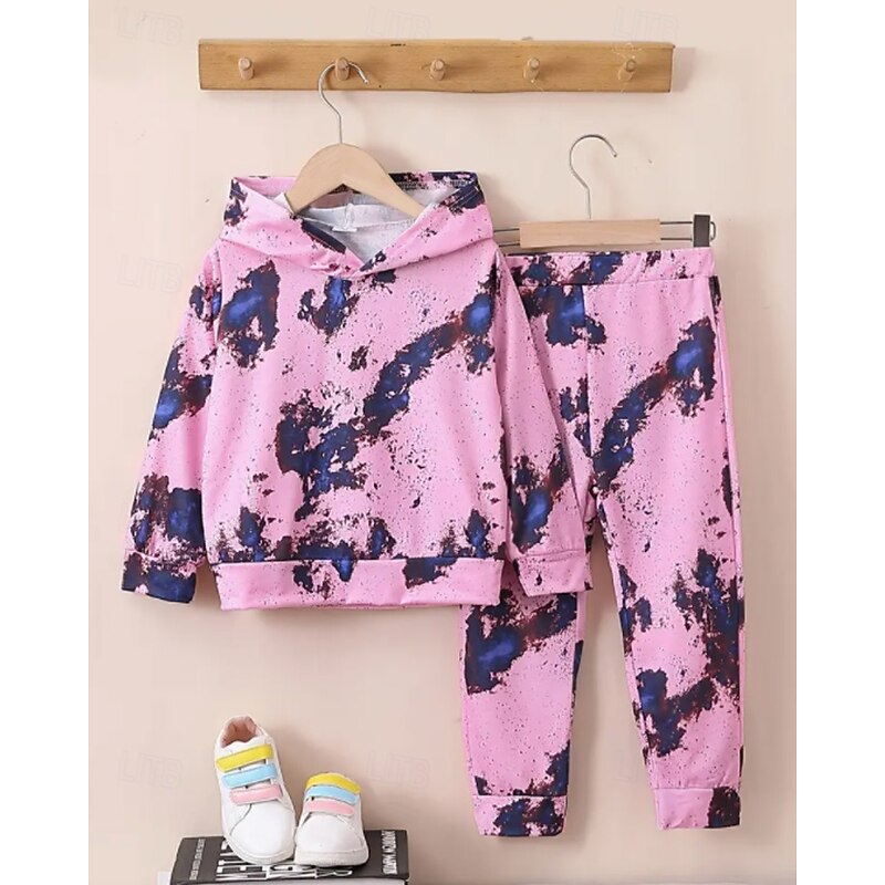 Why Choose Boys Girls' 3D Graphic Tie Dye Sports Suit Hoodie Set Tracksuits Long Sleeve Spring Fall Daily Casual Tights Kids 4-12 Years Hooded Outdoor Vacation Sports Tailored Fit?