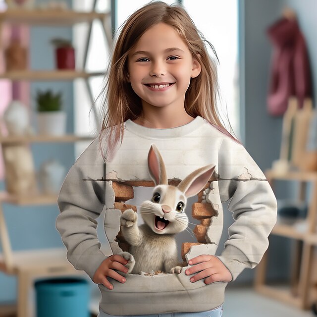 Girls' 3D Cat Rabbit Sweatshirt Pullover Long Sleeve 3D Print Fall Winter Fashion Streetwear Adorable Polyester Kids 3-12 Years Crew Neck Outdoor Casual Daily Regular Fit 9