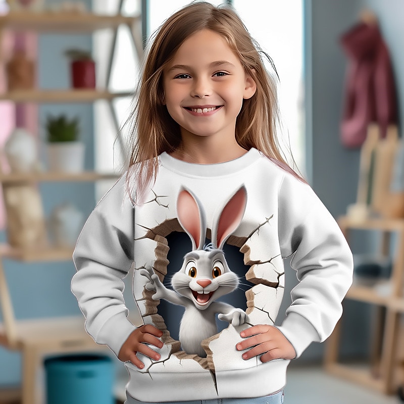 trending ! Girls' 3D Cat Rabbit Sweatshirt Pullover Long Sleeve 3D Print Fall Winter Fashion Streetwear Adorable Polyester Kids 3-12 Years Crew Neck Outdoor Casual Daily Regular Fit