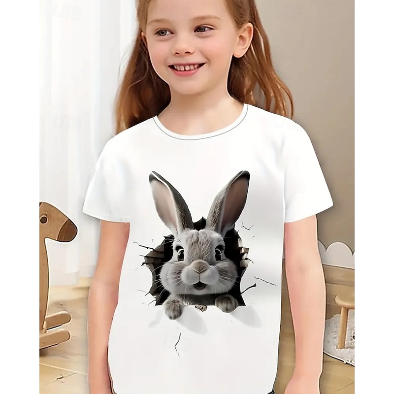 trending ! Girls' 3D Rabbit T shirt Tee Short Sleeve Summer Spring Fashion Basic Kids 4-12 Years Crew Neck Outdoor Casual Daily Regular Fit