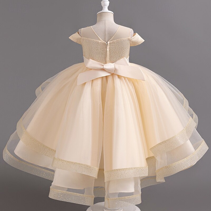Why Choose Kids Girls' Party Dress Solid Color Short Sleeve Wedding Special Occasion Ruched Mesh Zipper Adorable Sweet Polyester Asymmetrical Party Dress Summer Spring Fall 4-13 Years White Champagne Pink?