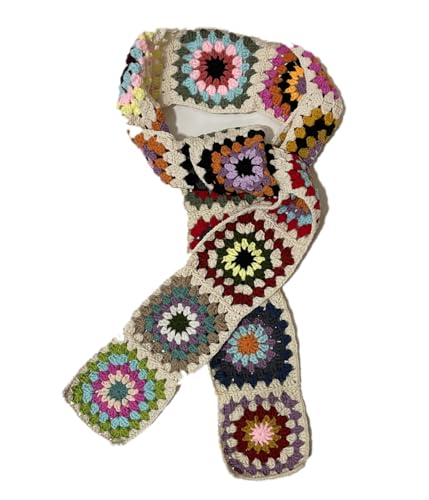 trending ! Women Granny Square Warp Cable 100% Handmade Knit Mixed Color Long Scarf
