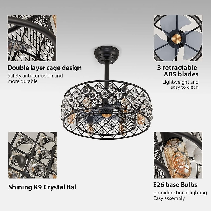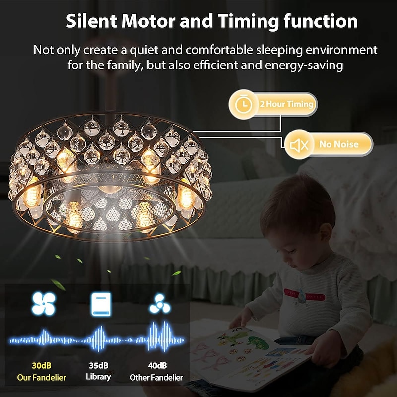 Why Choose Ceiling Fan with Lights Crystal Black 21" snug White LED 6 Speeds Timing Reversible Blades with Remote Control, Household Fan Chandelier, indoor Low Profile Flush Mount Ceiling Fan 110-120V?