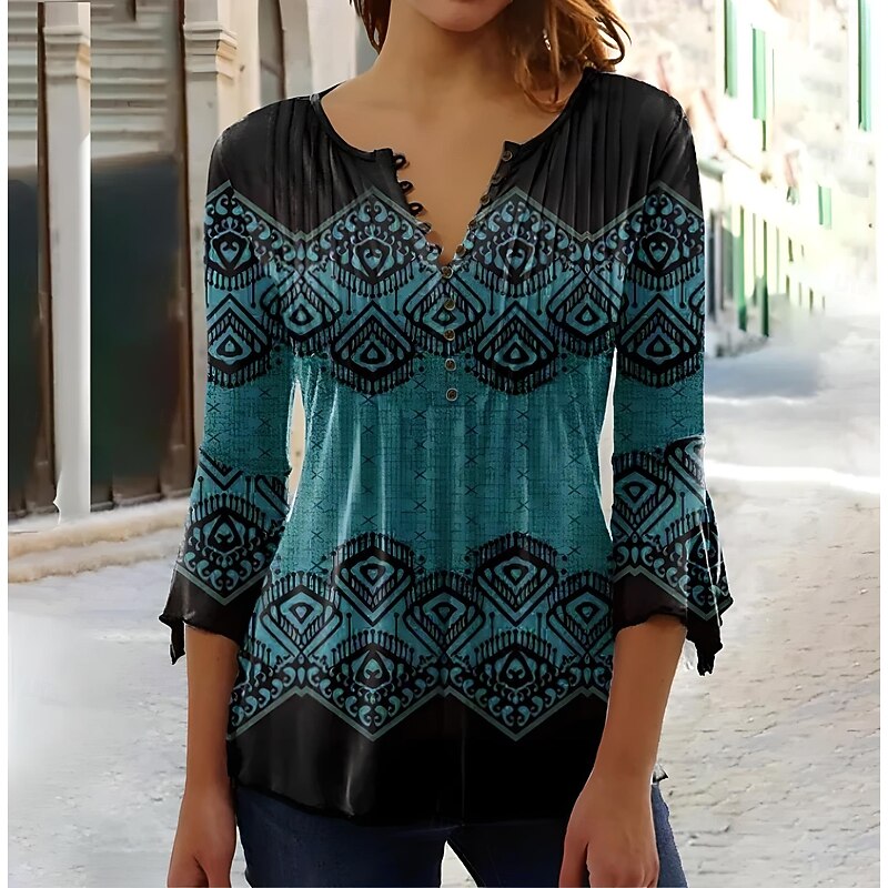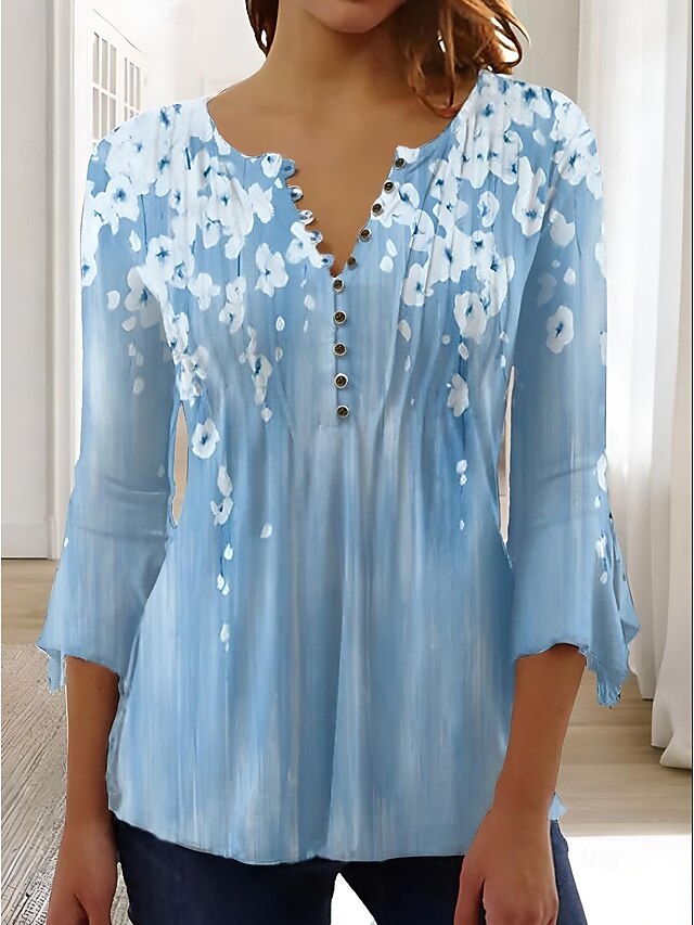 More information about Women's Blouse V Neck Ombre Floral Graphic Elegant 3/4 Length Sleeve Regular Tops Daily Going out Buttons Sage Green White Blue Purple Green Summer Spring Fall