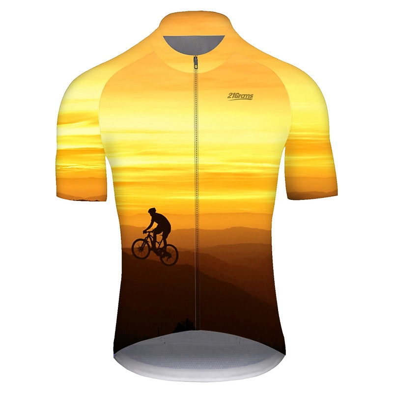 trending ! Men's Cycling Jersey Gradient Patterned 3D Short Sleeve Bike Jersey Top with 3 Rear Pockets Mountain Bike MTB Road Bike Cycling Cycling expedient Dry Ultraviolet Resistant Reflective Strips Sports Yellow