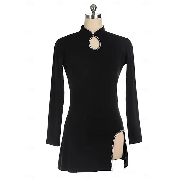 More information about Figure Skating Dress Women's Girls' Ice Skating Dress Black Mesh Spandex Stretchy Training Practice Professional Skating Wear Thermal cozy Crystal / Rhinestone Long Sleeve Ice Skating Figure Skating