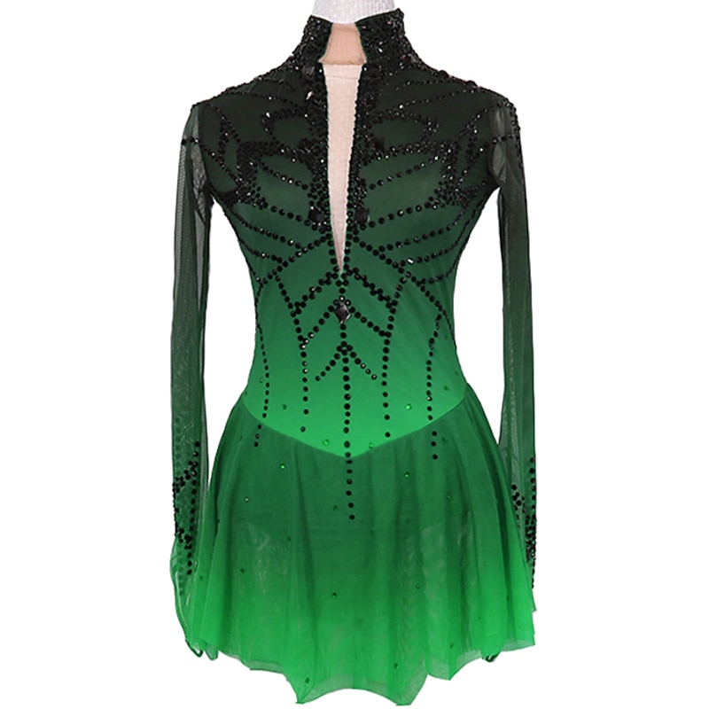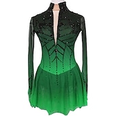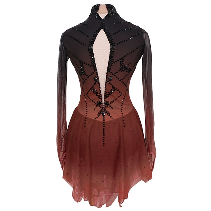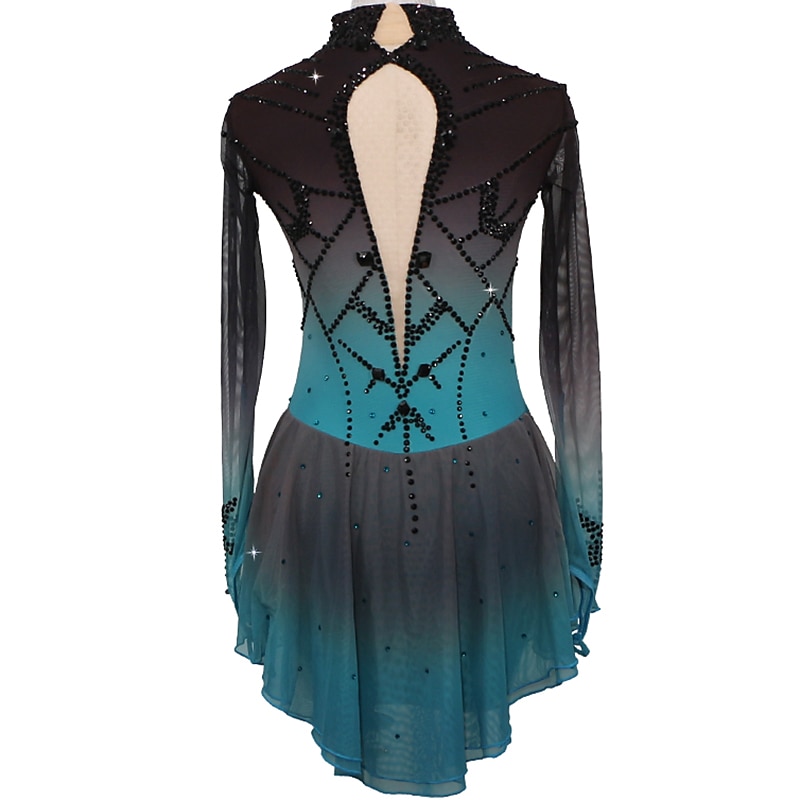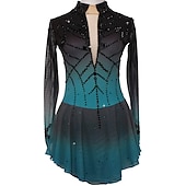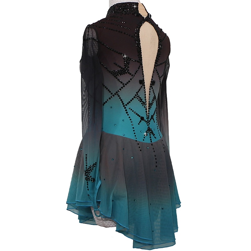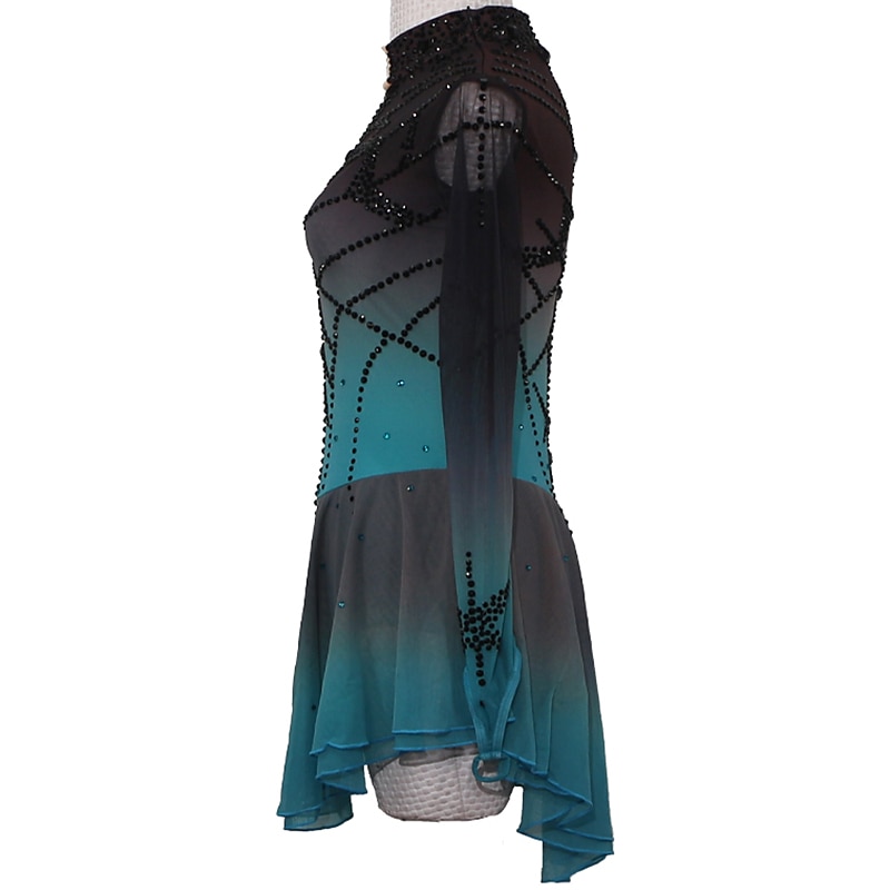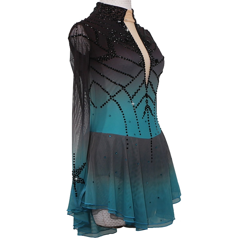 More information about Figure Skating Dress Women's Girls' Ice Skating Dress Outfits Black / Red Black / Green Black / Blue Patchwork Asymmetric Hem Mesh Spandex High Elasticity Competition Skating Wear Handmade Color
