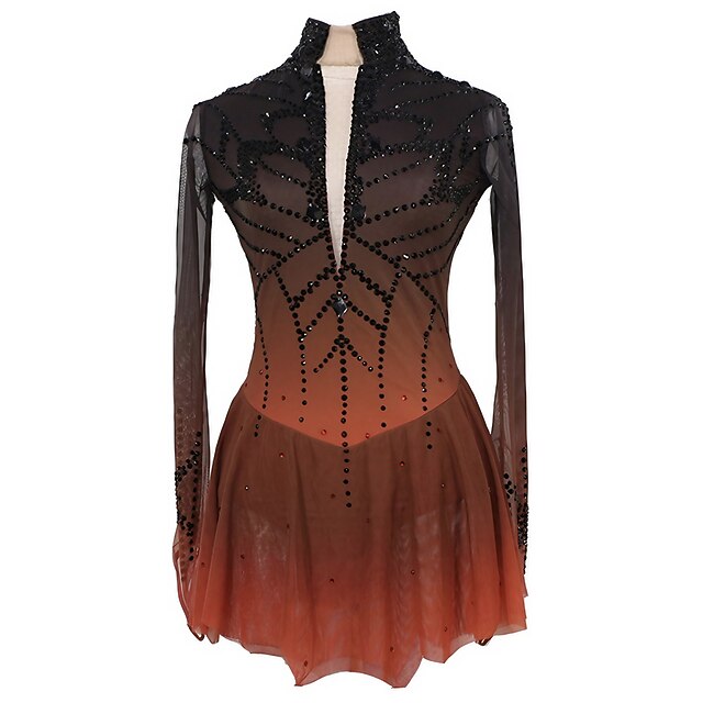 trending ! Figure Skating Dress Women's Girls' Ice Skating Dress Outfits Black / Red Black / Green Black / Blue Patchwork Asymmetric Hem Mesh Spandex High Elasticity Competition Skating Wear Handmade Color