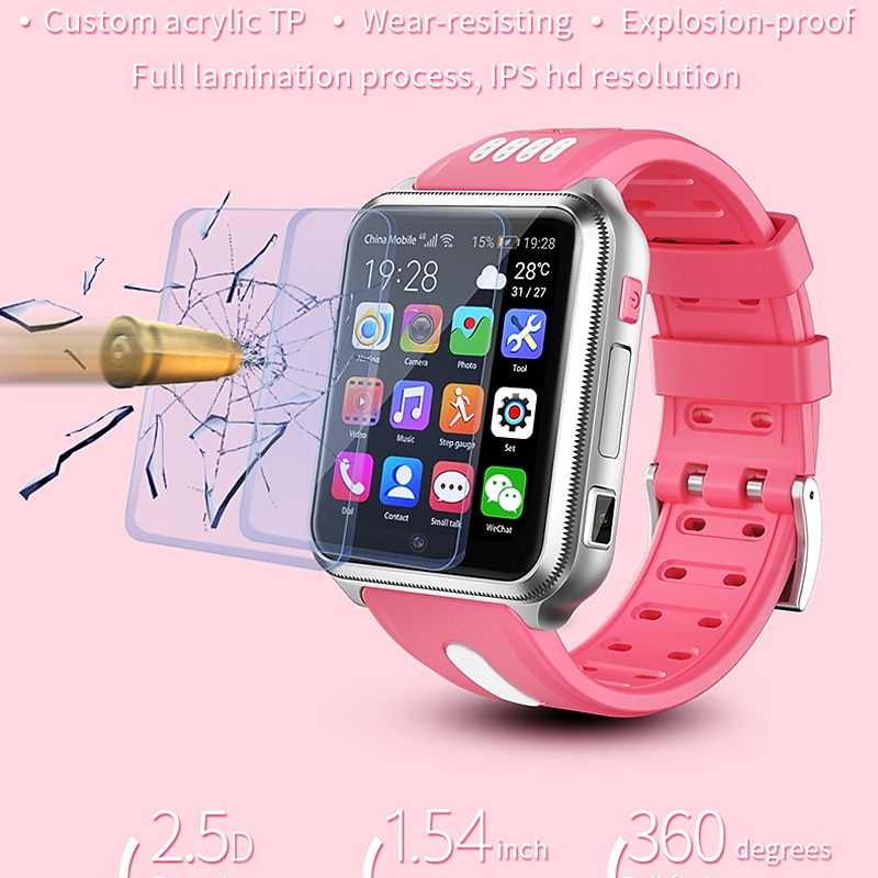 H1 Smart Watch 1.54 inch Smartwatch Fitness Running Watch Bluetooth 4G Pedometer Alarm Clock Calendar Compatible with Android iOS Kid's Women GPS with Camera IP 67 31mm Watch Case 5