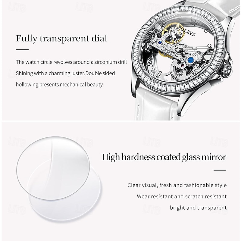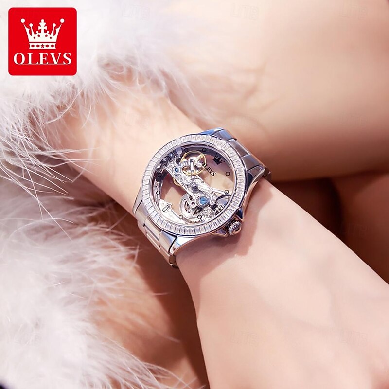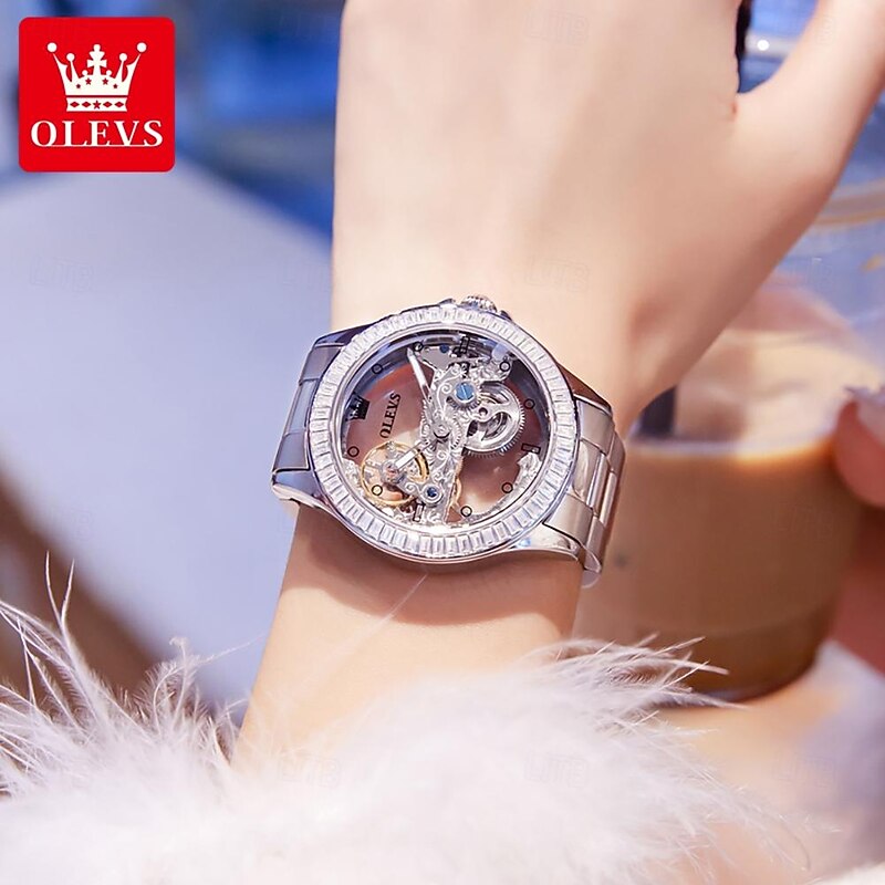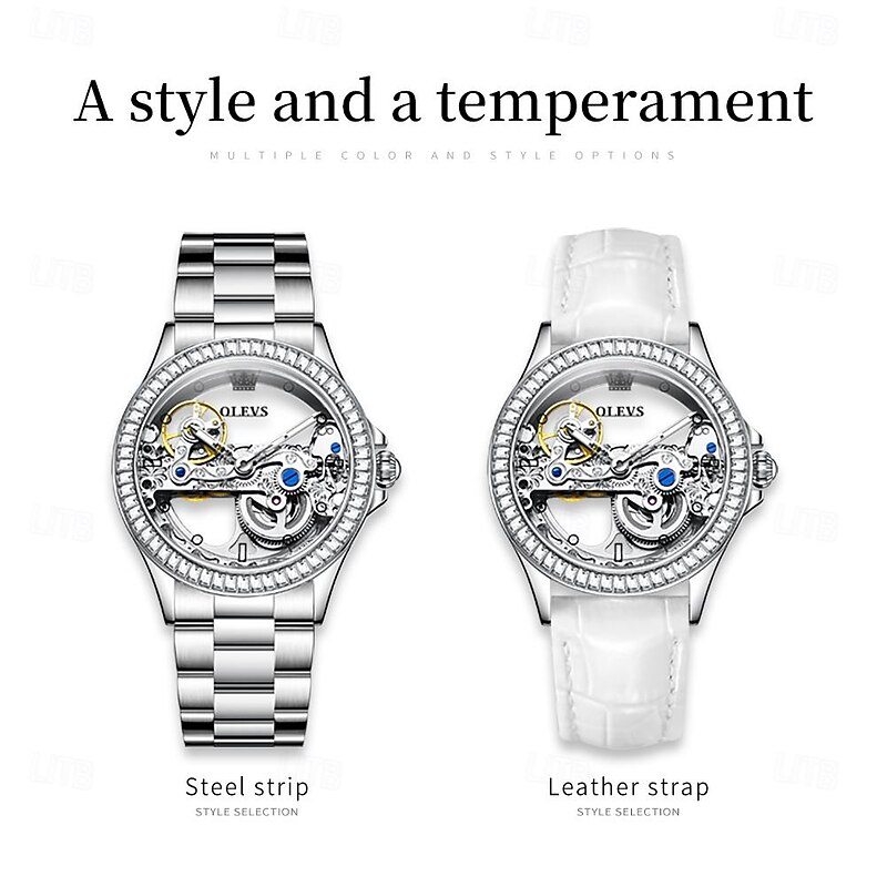 Why Choose OLEVS Women Mechanical Watch Fashion Rhinestone Business Wristwatch Hollow Skeleton Waterproof Alloy Genuine Leather Watch?
