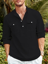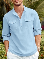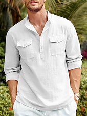 trending ! Men's Shirt Linen Shirt Casual Shirt Beach Shirt Black White Blue Long Sleeve Plain Stand Collar Spring & Summer Hawaiian Holiday Clothing Apparel Basic
