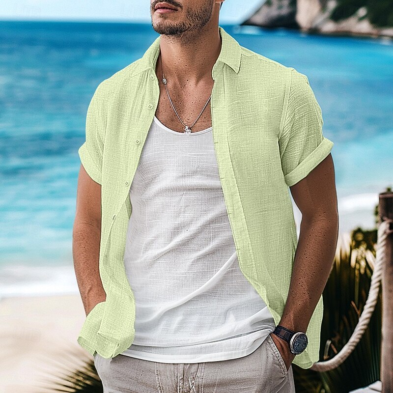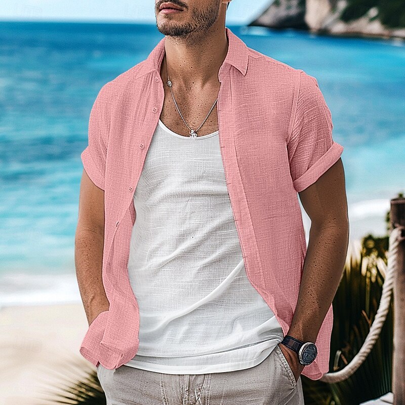 More information about Men's Shirt Linen Shirt Summer Shirt Button Down Shirt Casual Shirt Beach Shirt Plain Vacation Curise Black White Light Green Pink Short Sleeve Lapel Summer Clothing Apparel