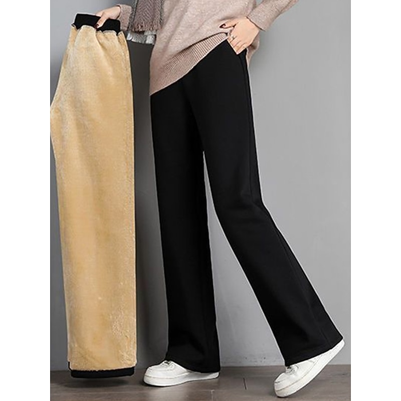 Highlights [Fabric]: Crafted from high-quality polyester, these fleece-lined pants provide excellent warmth and comfort. The micro-elastic fabric allows for ease of movement while maintaining a soft and cozy feel, perfect for the winter season. [Fit]: Featuring a wide-leg cut, these pants offer a loose and relaxed fit, ideal for those who value both comfort and style in their daily wear. [Design Highlights]: The pants are designed with practical pockets and an elastic waistband, ensuring comfort and convenience. The high waistline adds a flattering touch, while the solid color offers a versatile base for any outfit. [Occasions]: These pants are perfect for daily wear, vacations, or casual outings. Whether you're lounging at home or stepping out for a casual day, they provide a fashionable and plush option that suits various scenarios. [Size Range]: Available in sizes M, L, XL, 2XL, 3XL, and 4XL, these pants cater to a wide range of body types, ensuring a suitable fit for everyone. Perfect for everyday use. finest materials and excellent craftsmanship ensure long-lasting durability.