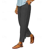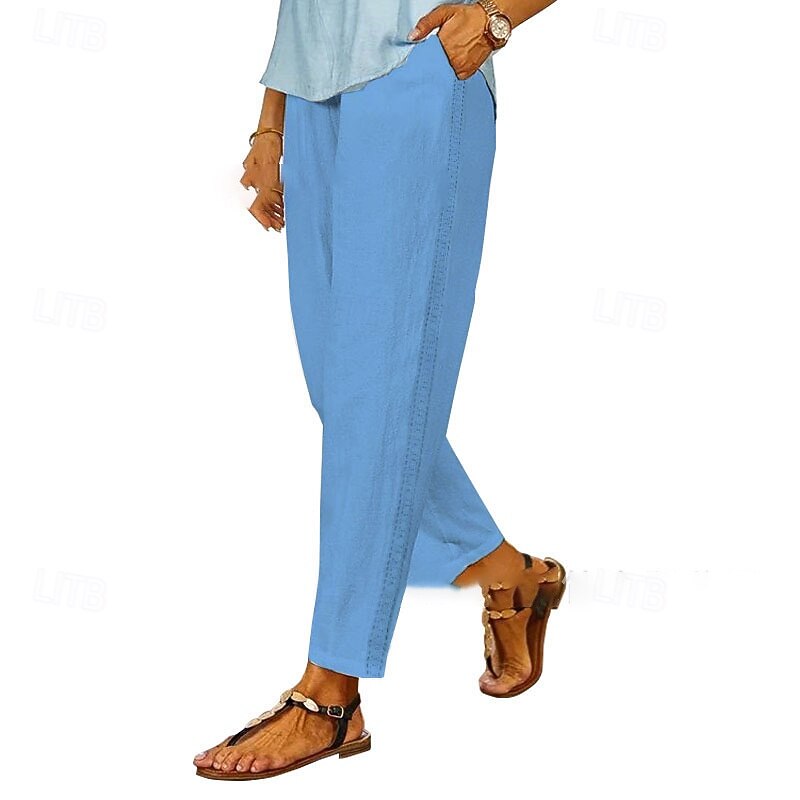 Why Choose Women's Cotton Linen Pants Slacks Casual Full Length Natural Plain Pocket Elastic Waist Comfy Outdoor pleasant Holiday Going out Camel Black White Blue Summer Regular Fit?
