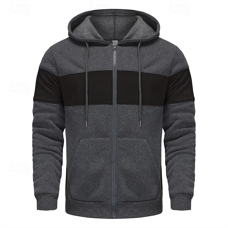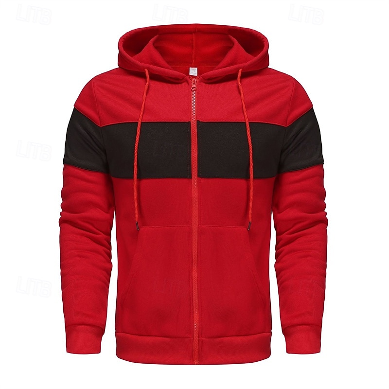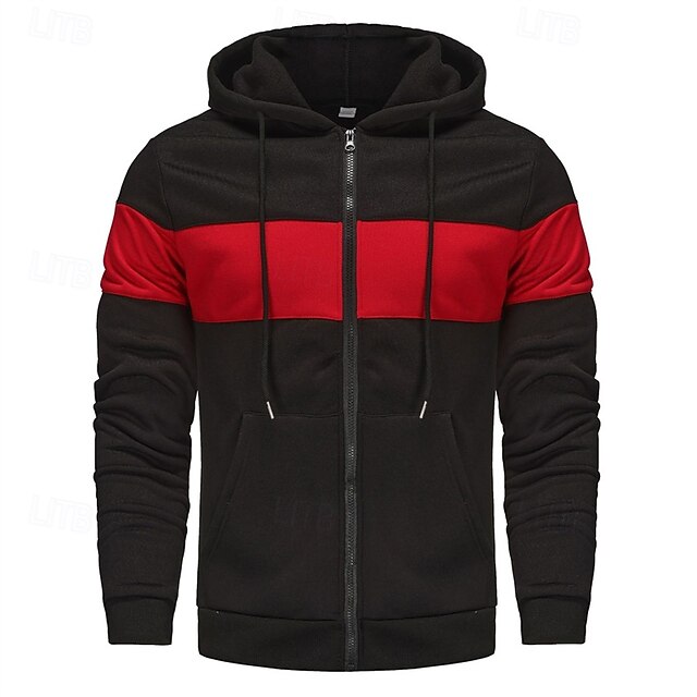 trending ! Men's Hoodie Full Zip Hoodie Red & Black Black Red Light Grey Dark Gray Hooded Color Block Patchwork Sports & Outdoor Daily Holiday Polyester Streetwear Basic Casual Spring Autumn / Fall Clothing