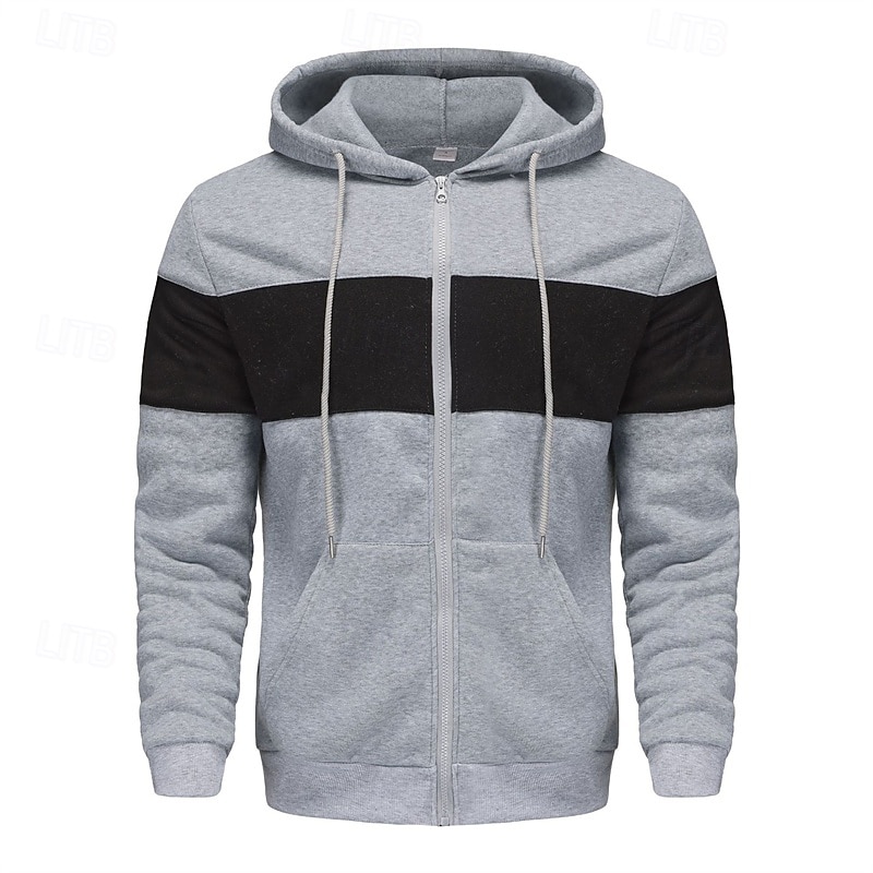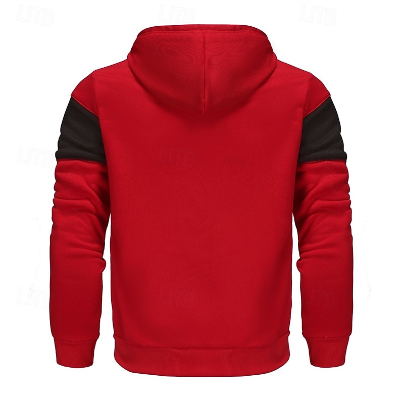More information about Men's Hoodie Full Zip Hoodie Red & Black Black Red Light Grey Dark Gray Hooded Color Block Patchwork Sports & Outdoor Daily Holiday Polyester Streetwear Basic Casual Spring Autumn / Fall Clothing