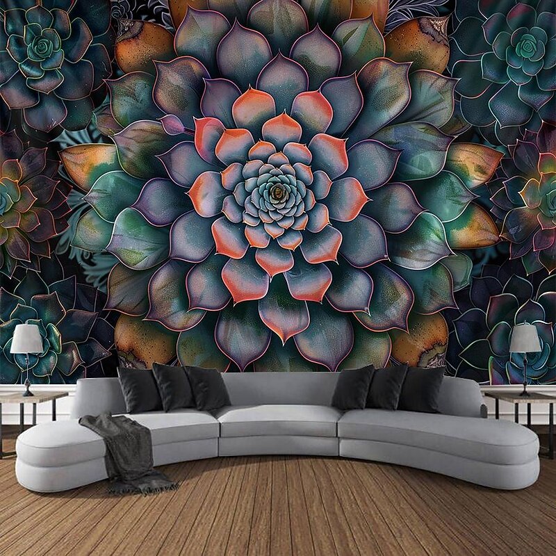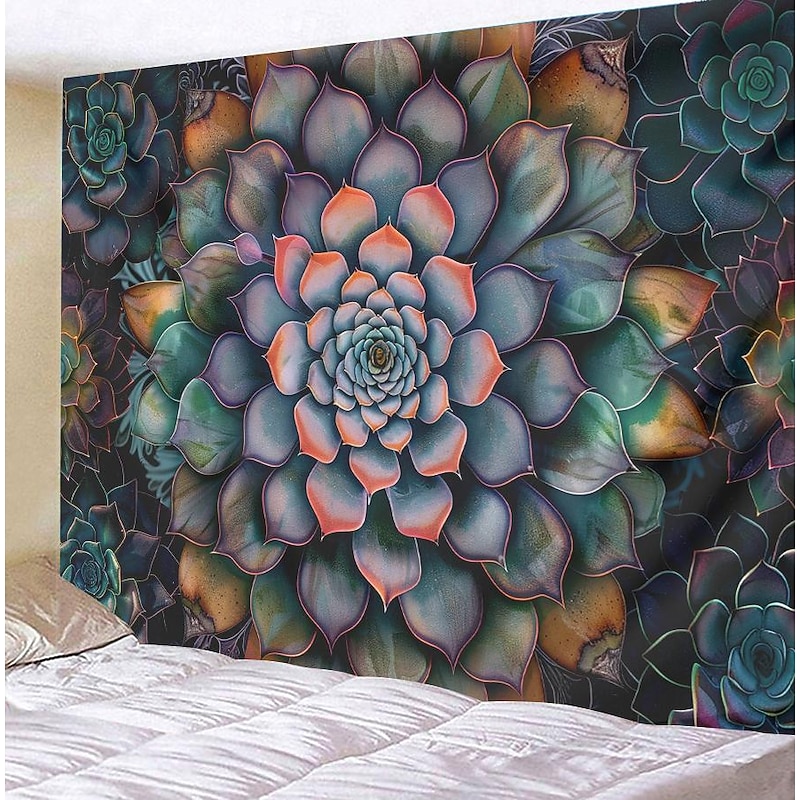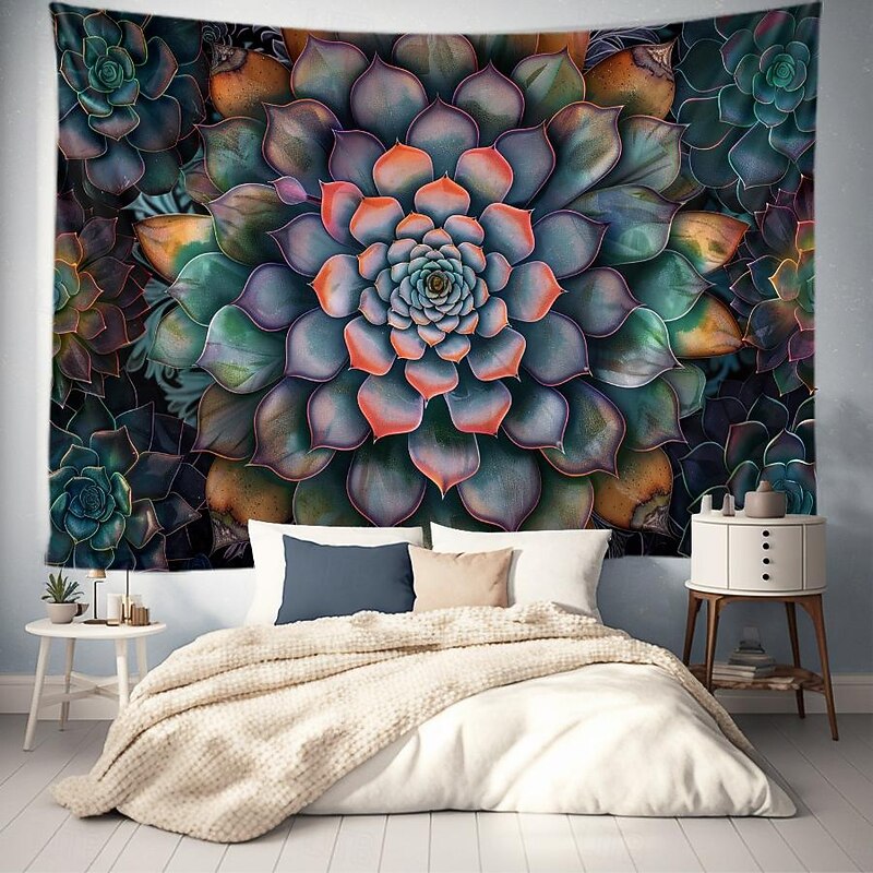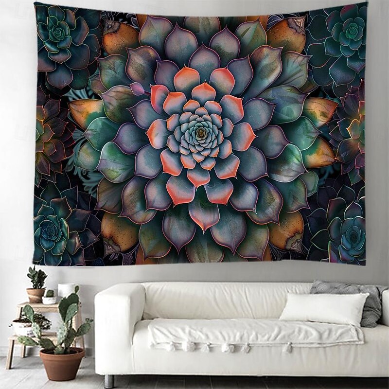 Mandala Bohemian Succulents Hanging Tapestry Wall Art Large Tapestry Mural Decor Photograph Backdrop Blanket Curtain Home Bedroom Living Room Decoration