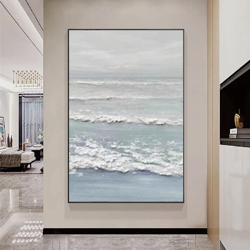 $116.99 - Hand painted Blue Textured Minimalist oil painting handmade Wall Art Blue 3D Minimalist Painting on Canvas Large Beige Art oil painting seascape painting wave beach texture pattle knife oil painting 2025. Shop for cheap Landscape Paintings online? Buy at lightinthebox.com on sale today!