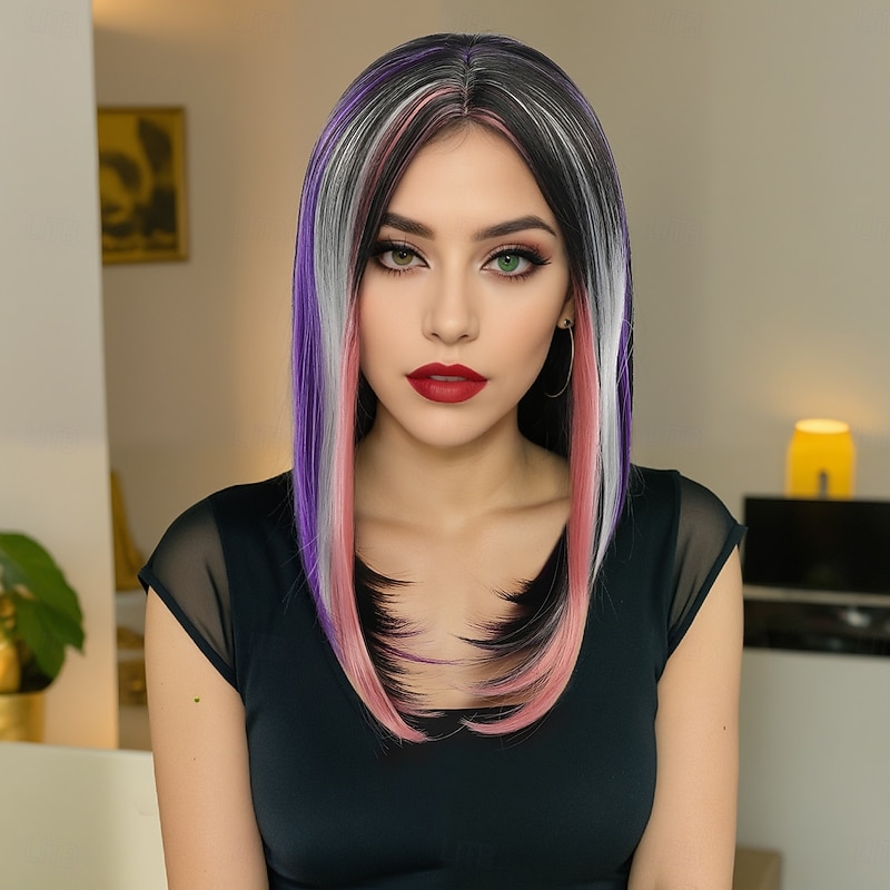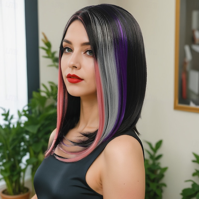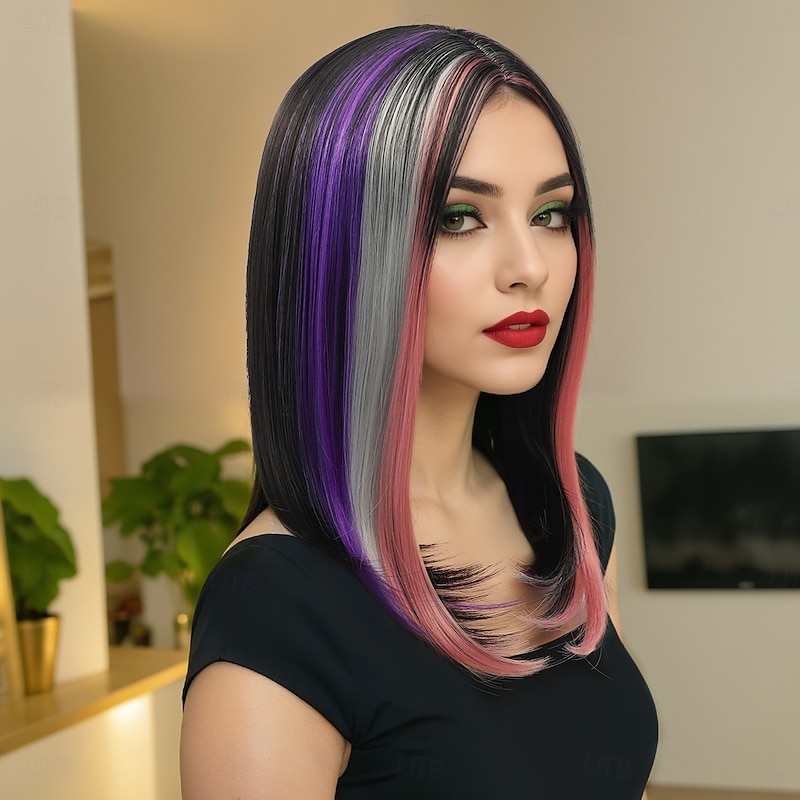 $20.99 - Synthetic Wig Wavy Natural Straight Layered Haircut With Bangs Machine Made Wig 16 inch A1 Synthetic Hair Women's Middle Part Classic Color Gradient Multi-color 2025. Shop for cheap Synthetic Trendy Wigs online? Buy at lightinthebox.com on sale today!