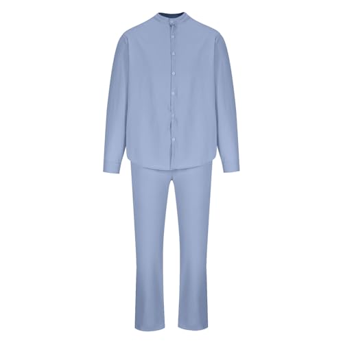 More information about Men Cotton Linen Set Plus Size Long Sleeve Button Shirts Pants 2PC Suit Blouse Top Wide Leg Trouser Summer Outfits