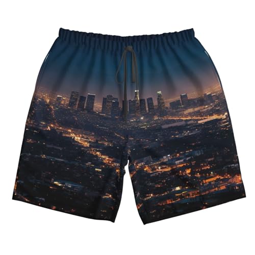 trending ! Men's Swim Trunks Los Angeles Skyline expedient Dry Board Shorts with Pocket Swimsuit Swimwear for Men Beach Shorts