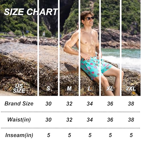 BRISIRA Men's Hawaiian Beach Shorts No Liner 5 Inch Lightweight Quick Dry Swim Trunks with Drawstring Elastic Waist & Pocket 5