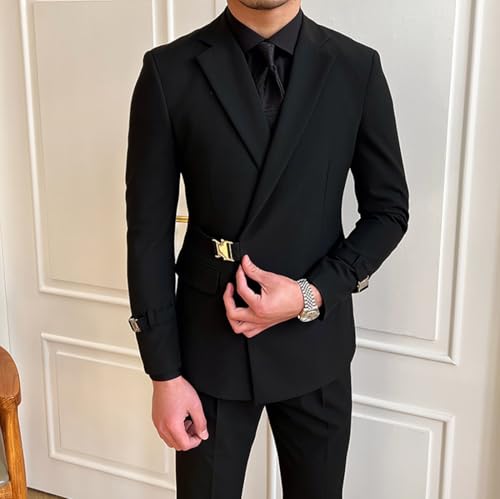 • Style:This mens suit slim sit 2 piece set is crafted with full shoulder and slim cut with 3D draping.Wedding prom tuxedo clothing for men fits tighter than a regular fit suit and makes you look sharp and charming.