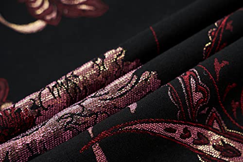 UNINUKOO Mens Floral Blazer Jacket Slim Fit Luxury Party Dinner Tuxedo Suit Jacket for Men US Size 42 Black Red 5