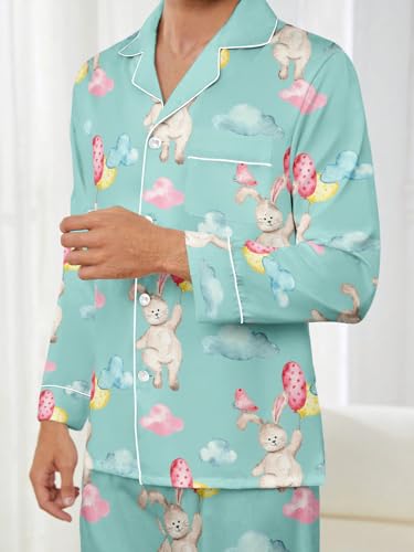 More information about Couple Easter Day Pajamas Loungewear Sets Sleepwear Button-Down Pj Set Rabbit Eggs 2 Piece Pjs Loung Set with Pockets