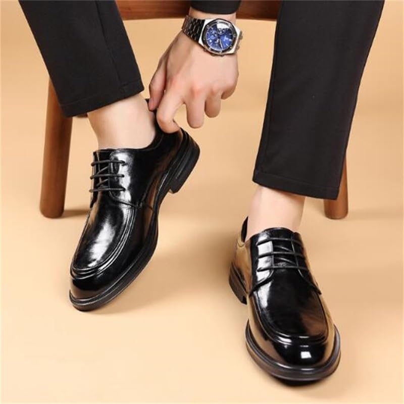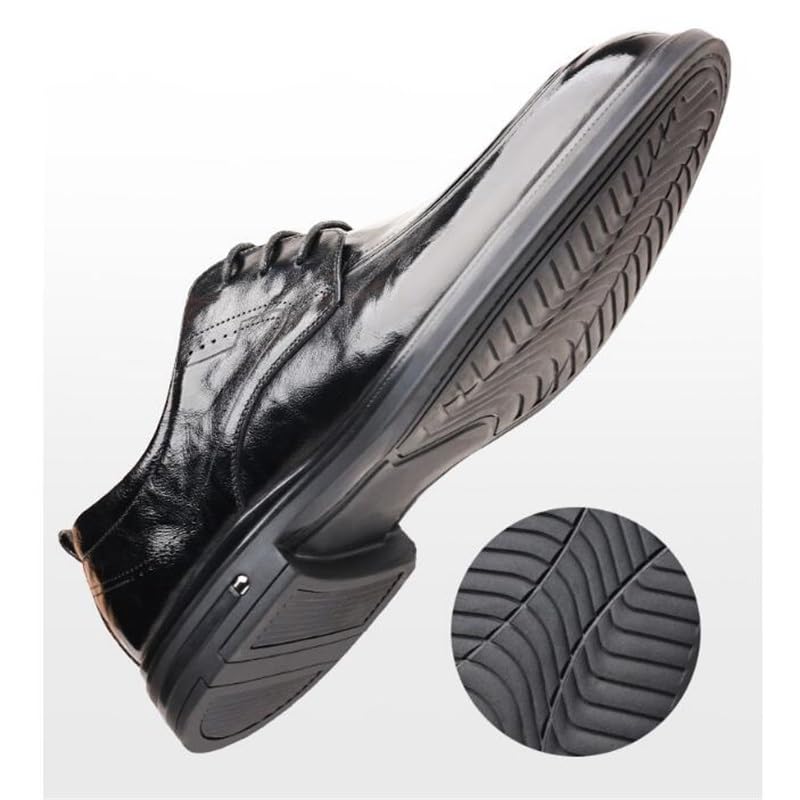 Black Patent Men's Dress Shoes Business Fashion Lace Up Shoe Rebound Shock Absorption Rubber gentle Sole Shoes for Men(D,8.5)