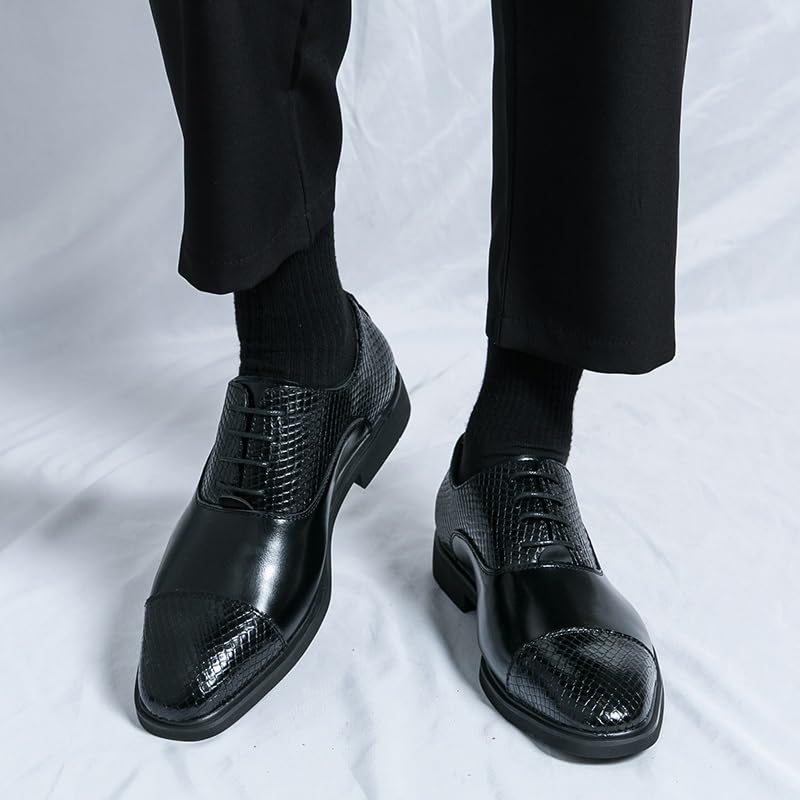 Why Choose Shoes Dress Oxford for Men Lace Up Round Toe Faux Leather Cap Toe Patchwork Oxford Shoes Anti-Slip Low Top Rubber Sole Slip Resistant Block Heel(Black,7.5)?