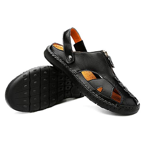 JAMONWU Men's Casual Closed Toe Adjustable Leather Sandals Handmade Fisherman Beach Sandals 5
