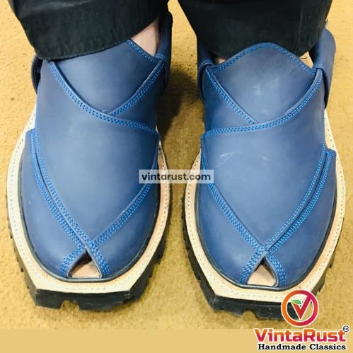 Blue Suede Leather Peshawari Chappal, Traditional Handcrafted Leather Footwear, Genuine Leather Peshawari Chappal 6
