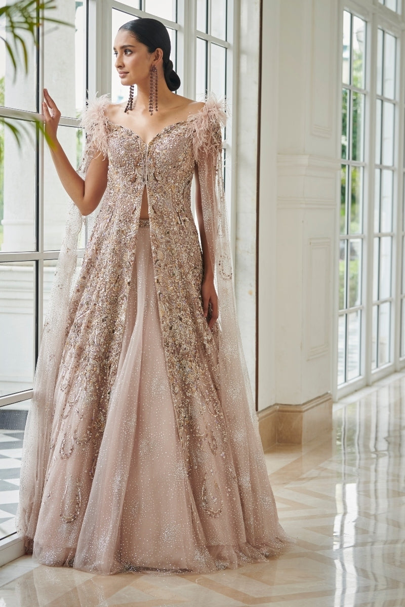 trending ! "Morning Dew" Silver Bridal Jacket Lehenga Set
