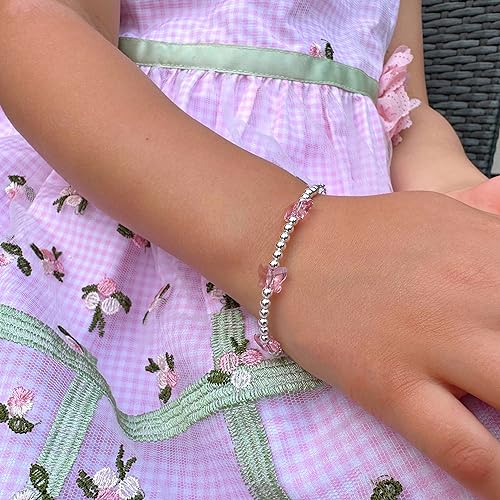 Sterling Silver Charm Bracelets for Girls, Butterfly Bracelets Embellished with 8mm Butterfly European Crystals 1