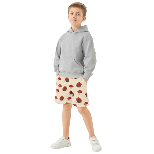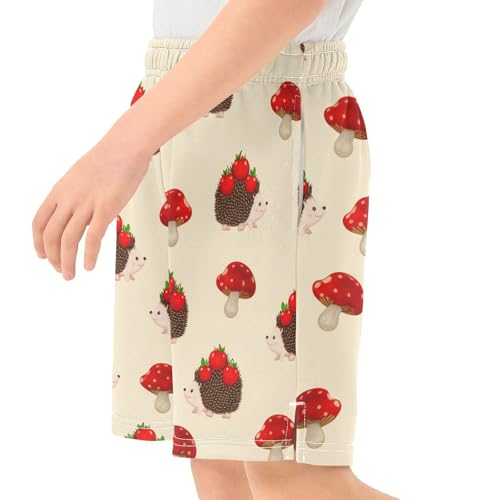 Hedgehogs and Mushrooms Athletic Shorts with Zipper Pockets, Youth Boys Athletic Running Shorts for Summer