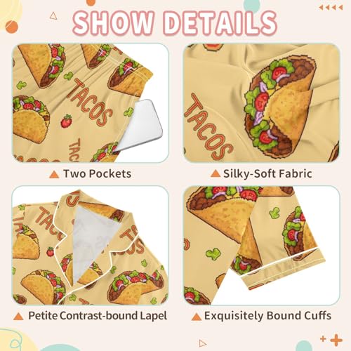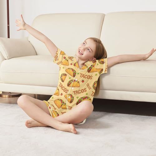 Satin Pajama Sets Short Sleeve Yummy Tacos Cartoon Button Down Silky Nightwear 2 Piece PJS 5-14Y 1